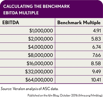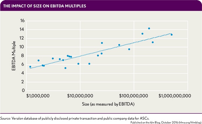 There is a clear correlation between the size of the company and the EBITDA multiple at which these ownership transactions occur. As a result, the public-market multiples for Surgical Care Affiliates or from the recent Tenet/USPI transaction, for example, cannot be appropriately applied to the purchase of a single ASC.